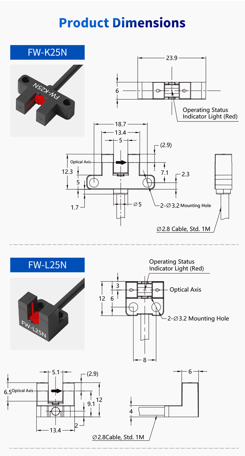 Meta leírás: Fedezze fel az FW25 sorozatú U-hornyú fotoelektromos érzékelőt 5 mm-es érzékelési szélességgel. Intelligens chippel, beépített házzal és sokoldalú stílusokkal az eredetérzékeléshez, a forgási sebesség figyeléséhez és a vezetősín vezérléséhez. Ideális robusztus ipari automatizálási alkalmazásokhoz.