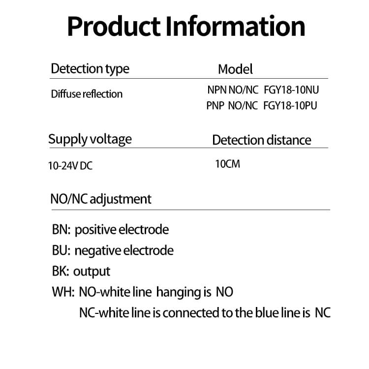 Az FGY18-10NU érzékelő kiemelkedik érzékelési képességeiben, lenyűgöző érzékelési távolságot kínálva, amely számos alkalmazáshoz igazodik. Akár precíz mérésekre van szüksége az automatizálási rendszerekben, a gépek vezérlésében vagy bármely más ipari környezetben, ez az érzékelő megbízható és pontos eredményeket biztosít.