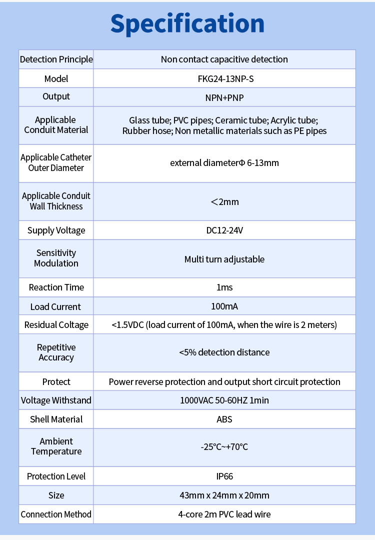 FKG24-13NP-S alacsony szintű detektáló kondenzátor cső szintű érzékelő kapacitív alapelve, amelyet a csőanyag nem könnyű befolyásolni
