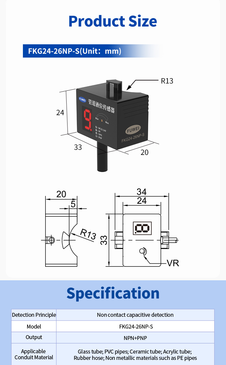 FKG24-26NP sorozatú cső folyadékszintű érzékelő kapacitív alapelve, amelyet a csőanyag nem könnyű érinteni