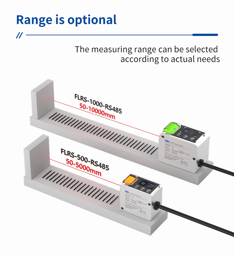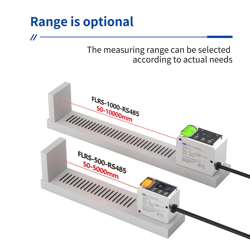 A többrétegű védelemmel – beleértve az elektrosztatikus, EFT- és túlfeszültségvédelmet – épült FLRS sorozat védi berendezéseit és fokozza az üzembiztonságot. Kompakt, integrált mérési és vezérlési kialakítása minimálisra csökkenti a helyigényt és csökkenti a vezetékezés bonyolultságát, ami egyszerre kínál hatékonyságot és egyszerű telepítést. Válasszon az olyan modellek közül, mint az FLRS-1000-RS485 (50–10 000 mm) vagy az FLRS-500-RS485 (50–5 000 mm), hogy megfeleljen az Ön sajátos tartománykövetelményeinek.