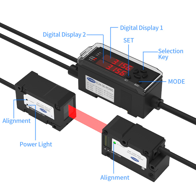 Nagy pontosságú lézer-elmozdulás mérés átmérő korrekciós szélesség rés érzékelő FLM-50-RS485