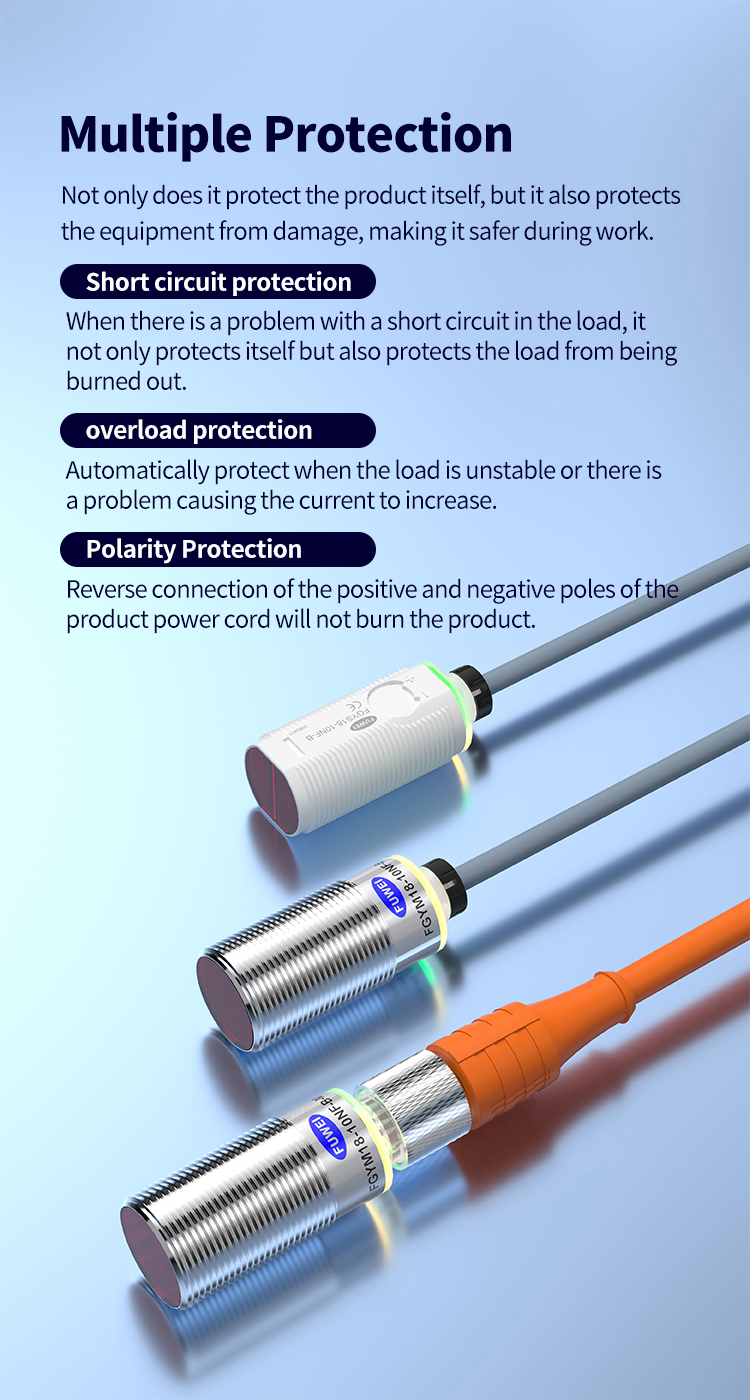 Rövidzárlat védelme: Az érzékelő és a csatlakoztatott berendezések mind a terhelés során biztosítják a rövidzárlatok során.