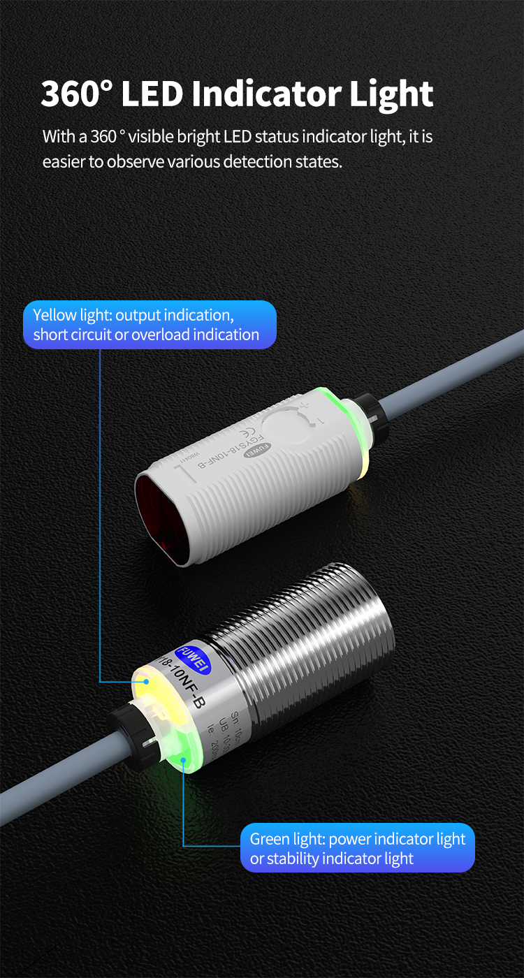 Az FGY18-10NU-B fényes, 360 ° -os látható LED állapotjelzővel rendelkezik. Az operátorok bármilyen szögből könnyedén figyelemmel kísérhetik az érzékelő működési állapotát. Ez a kialakítás jelentősen megkönnyíti a CNC gépkezelői valós idejű megfigyelést és hibakeresést, csökkentve a nem egyértelmű állapotmutatók által okozott leállási időt és növeli a termelési hatékonyságot.