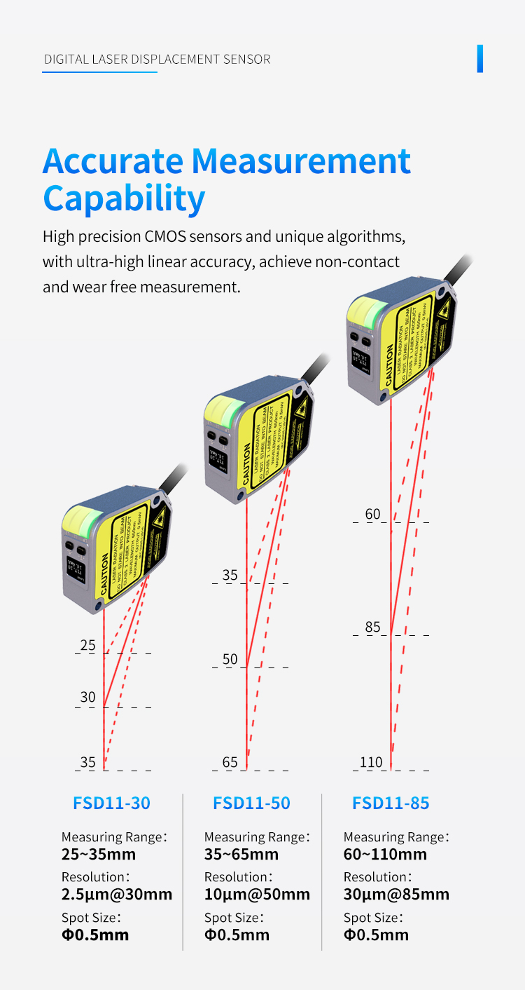 A modern ipari termelés precíziós szabályozása területén minden finom mérés és pozicionálás közvetlenül kapcsolódik a termék minőségéhez és gyártási hatékonyságához. A Fuwei FSD11 sorozatú, egyedi algoritmussal optimalizált lézeres távolságmérő szenzor kisméretű tárgyak stabil és megbízható észlelését tudja elérni. Legyen szó a nyomtatott áramköri lapok egymásra helyezésének magasságáról, vagy a palackkupak tömítések jelenlétéről vagy hiányáról, a mérési adatok pontosságát tudja biztosítani. Ez a nagy pontosságú észlelési képesség szilárd garanciát nyújt a gyártósor minőségellenőrzésére.