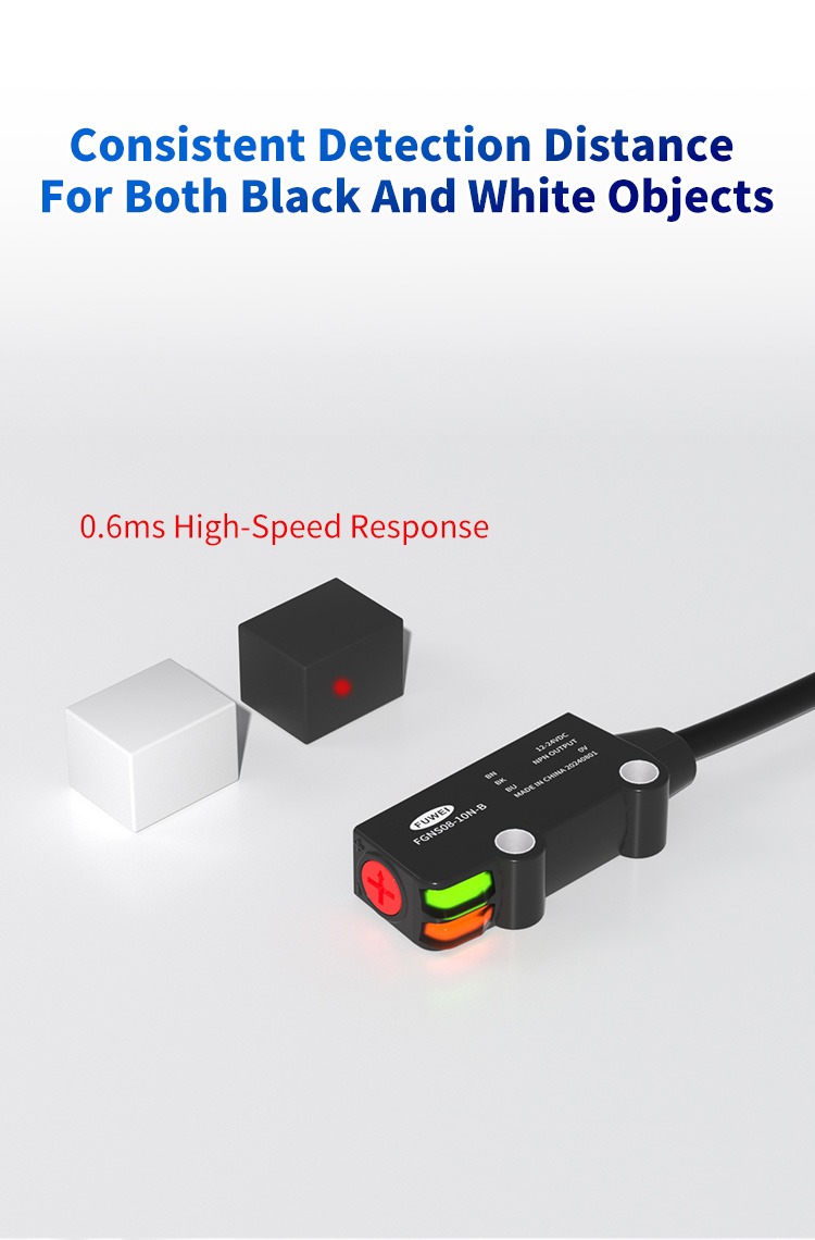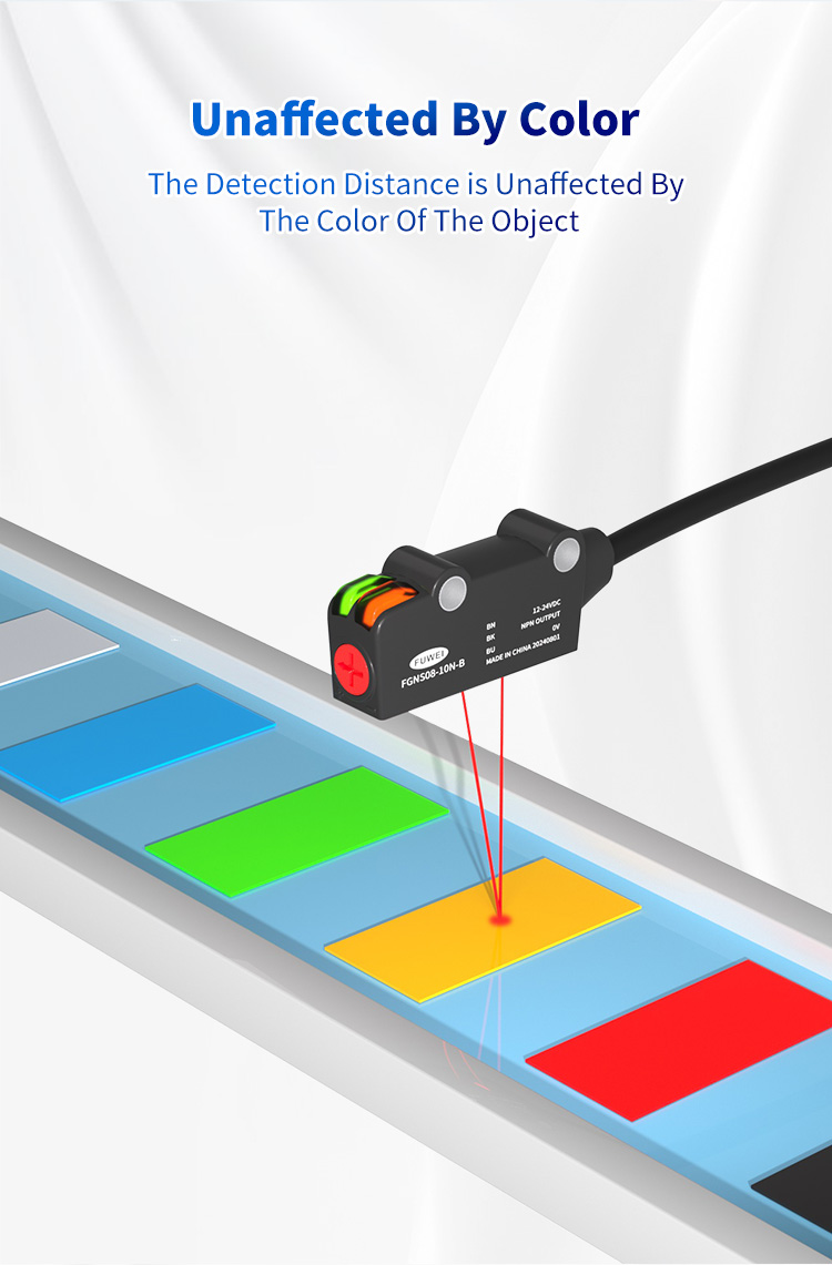 A hagyományos fotoelektromos érzékelőknek gyakran szükségük van újratelepítő detektálási paraméterekre, amikor különböző színű objektumokkal találkoznak, ami súlyosan befolyásolja a termelés hatékonyságát. Az FGNS08-10 sorozat fejlett háttér-szuppressziós technológiát alkalmaz, biztosítva, hogy a detektálási távolságot az objektum színe teljesen nem befolyásolja. A maximális beállítható 10 cm -es detektálási tartomány mellett az érzékelő fenntartja a következetes teljesítményt, függetlenül a sötét, könnyű vagy színes tárgyaktól. Ez jelentősen javítja a termelési vonal alkalmazkodóképességét és stabilitását.