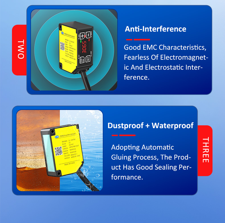 A kompakt dizájn az FSD25 sorozat másik kiemelése. Kompakt mérete és kicsi fényhelye lehetővé teszi, hogy könnyen felszerelhető legyen keskeny terekbe, mint például a robotkarok és a szállítószalagok rései, és a tradicionális érzékelők kihívása érdekében túl nagy a precíziós berendezésekbe. Ez az űrbarát kialakítás lehetővé teszi az automatizált gyártósorok rugalmasabb elrendezését, különösen alkalmas precíziós gyártási ágazatokra, például a 3C elektronikára és az orvostechnikai eszközökre.