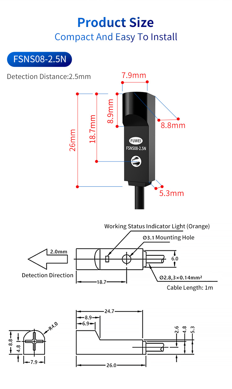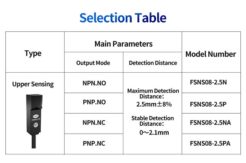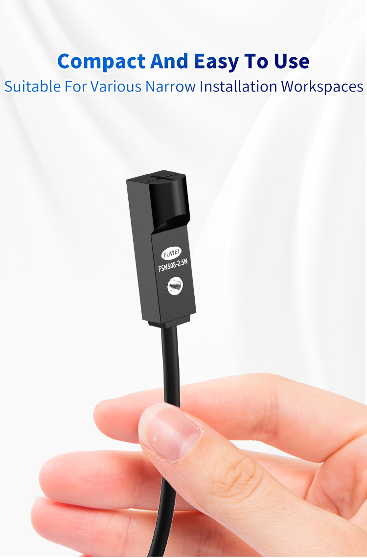 Legyen szó precíz fémtálca pozicionálásról, megbízható lemezkeret-érzékelésről, pontos érmeátadás-érzékelésről vagy kritikus bütyök észleléséről, az FSNS08-2.5N a sokoldalú és megbízható megoldás, amelyre számíthat. Folytassa az olvasást, hogy felfedezze a részletes specifikációkat, és megtudja, hogyan tudja ez az érzékelő optimalizálni az automatizálási folyamatokat.